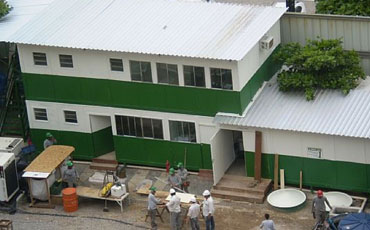 Canteiros de obra, área da saúde, área da educação, tapumes, guaritas, laboratórios.